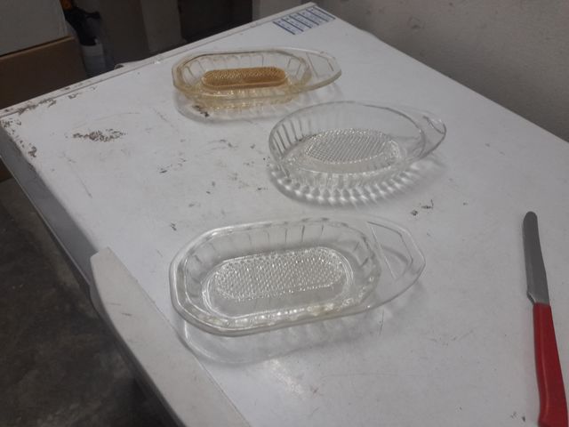 Set in vetro trasparente e ambrato. - Design ovale con manici.