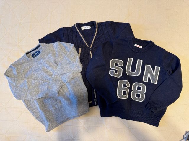 Dettagli del prodottoSet di tre maglioncini per bambino.