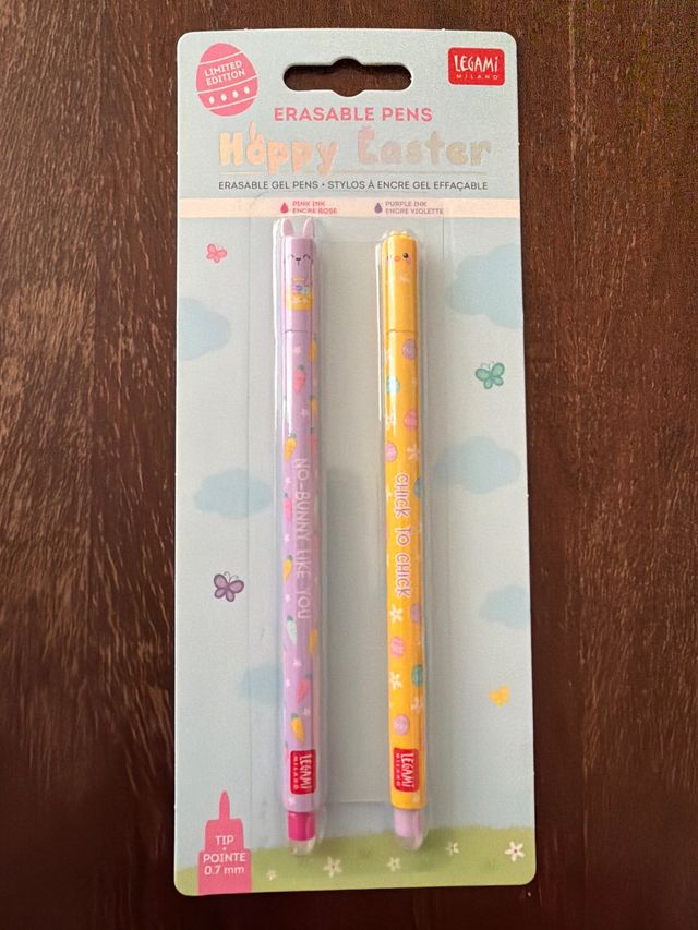 Dettagli del prodottoSet di tre penne cancellabili Legami a tema Pasqua.