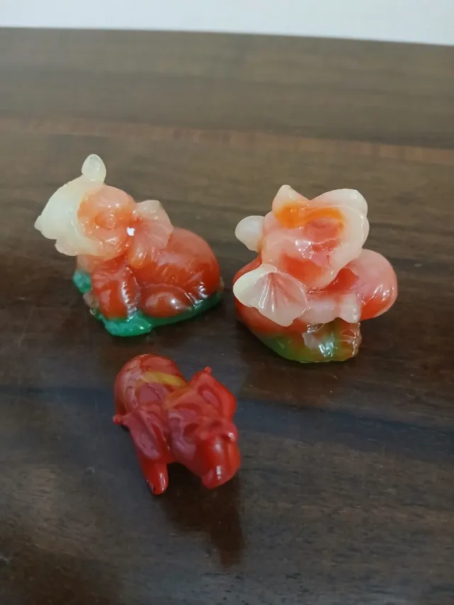 Delizioso set di tre piccoli elefanti, perfetti come soprammobili o elementi decorativi. - Realizzati in materiale colorato. - Design unico e accattivante.