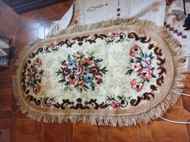 Dettagli del prodottoSet 3 morbidi tappeti coordinati per la camera da letto. Quello principale che andrebbe ai piedi del letto ha una dimensione di 130x70 cm circa, gli altri 2 che sarebbero laterali al letto dimensione 60×110 cm, Color beige. Come nuovi.