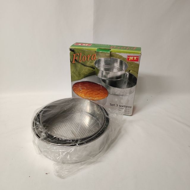 Set 3 tortiere in latta 23 25 e 27 cm nuove mai usate
