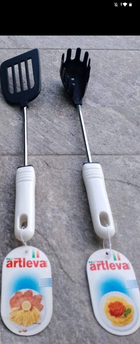 Set 2 utensili da cucina: - 1 spatola - 1 pinza per spaghetti Nuovi, ancora con l'etichetta.