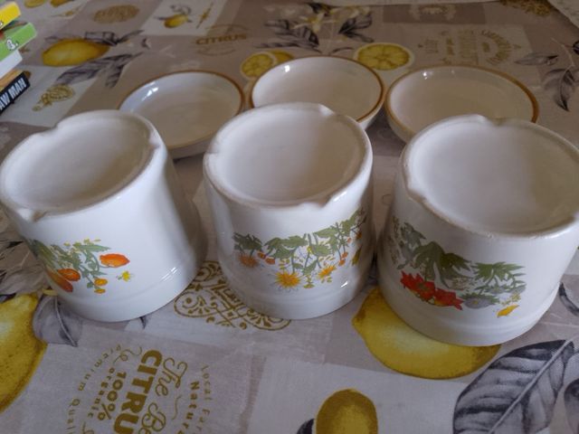 set tre tazze con sottopiatto in ceramica disegno floreale circonferenza 8 cm e altezza 7 cm