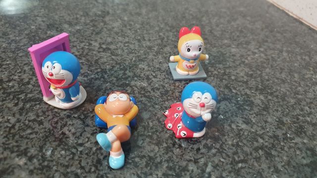 Set di 4 statuette di Doraemon e amici. - Personaggi in plastica. - Ideali per collezionisti o come decorazione.