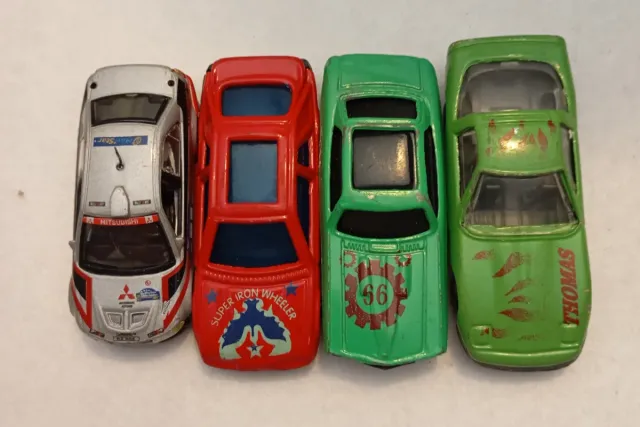 Set di quattro macchinine giocattolo.