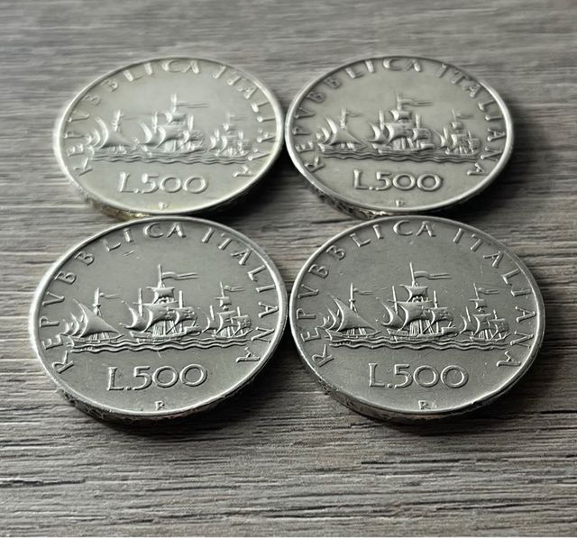 Dettagli del prodottoSet n. 4 monete da 500 lire "Caravelle" della Repubblica Italiana in argento (n.3 del 1959 e n.1 del 1958).