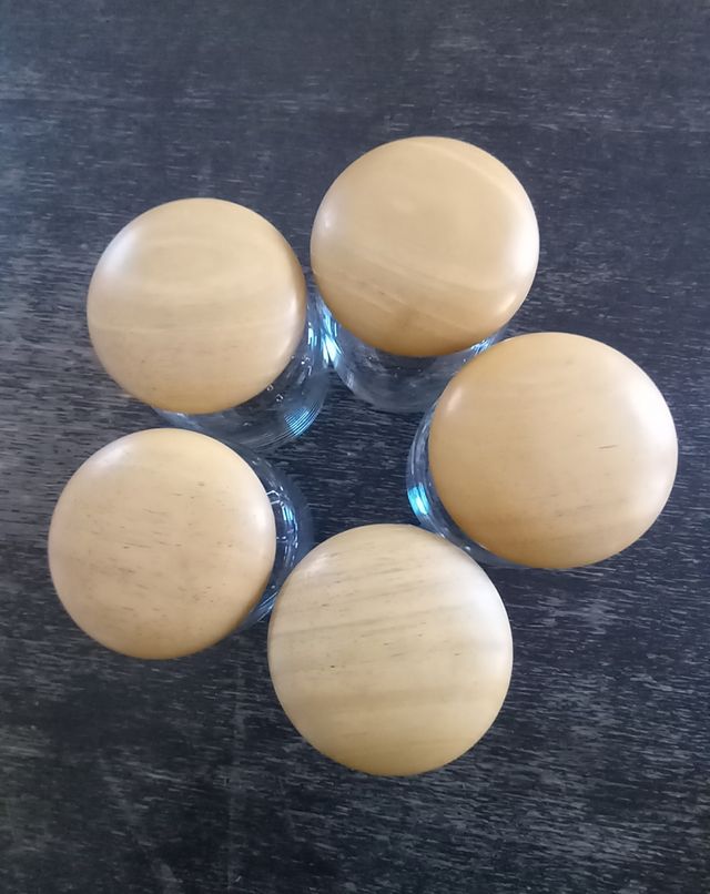 Con tappo in legno dotato di guarnizione in gomma.