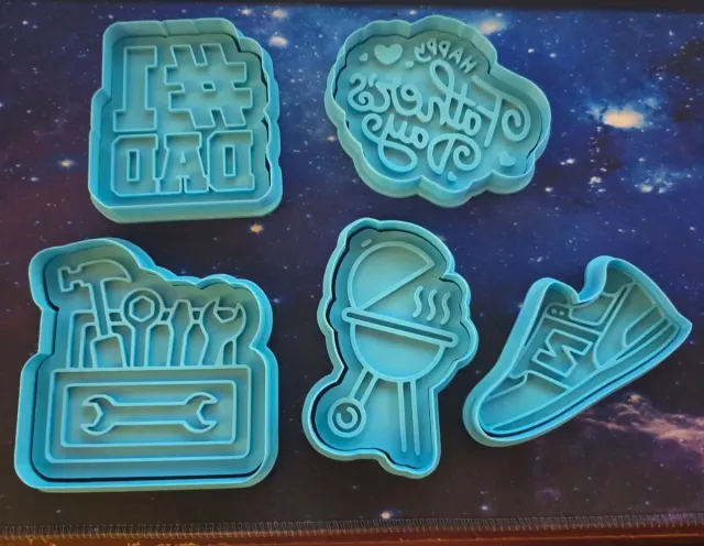 Dettagli del prodottoSet di 5 formine per biscotti a tema Festa del Papà. Perfette per creare dolcetti a tema.