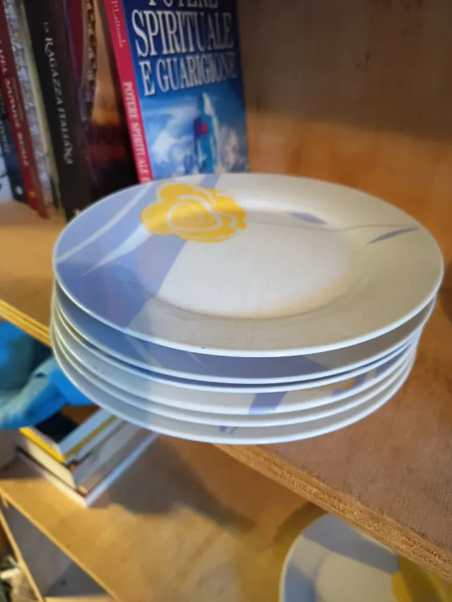 Set 5 Piatti Porcellana Fiori Giallo Blu