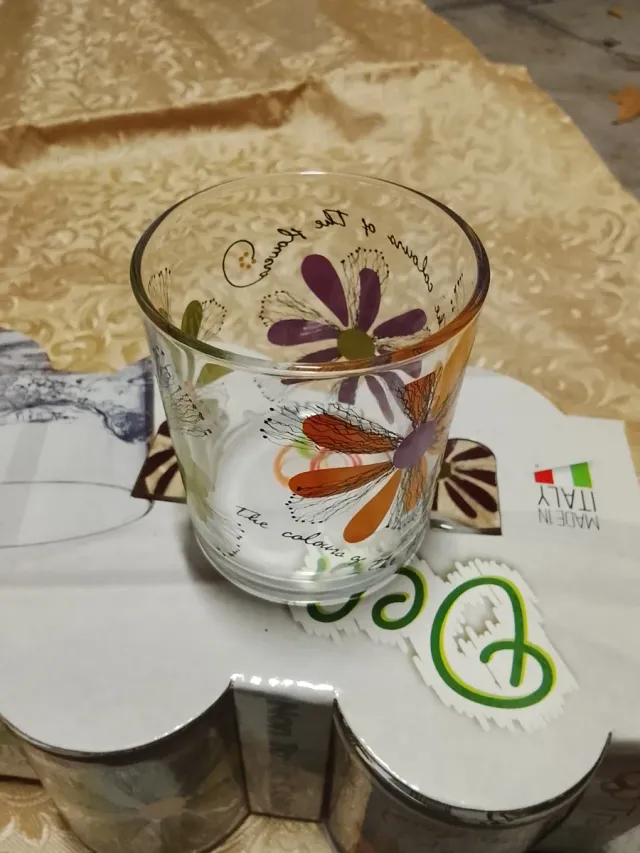 Set 6 Bicchieri in vetro decorato con fiori