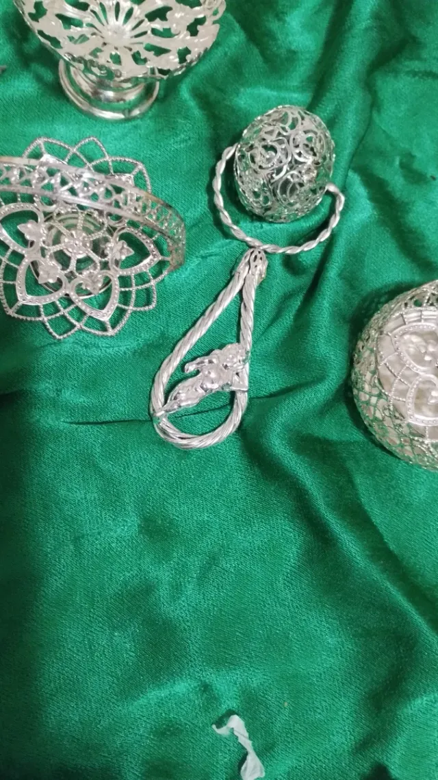 Set di sei decorazioni realizzate in metallo argentato. - Design traforato e dettagli raffinati. - Ideali per arricchire la tua casa o come idea regalo.