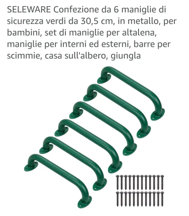Dettagli del prodottoSet di 6 maniglie di sicurezza verdi in metallo, lunghe 30,5 cm.