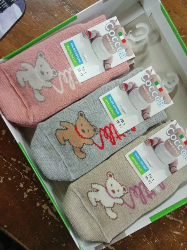Set di 6 paia di calzini per neonato. - Taglia 1 (16-17). - Fantasia con orsetto. - Colori assortiti: rosa, grigio e beige.