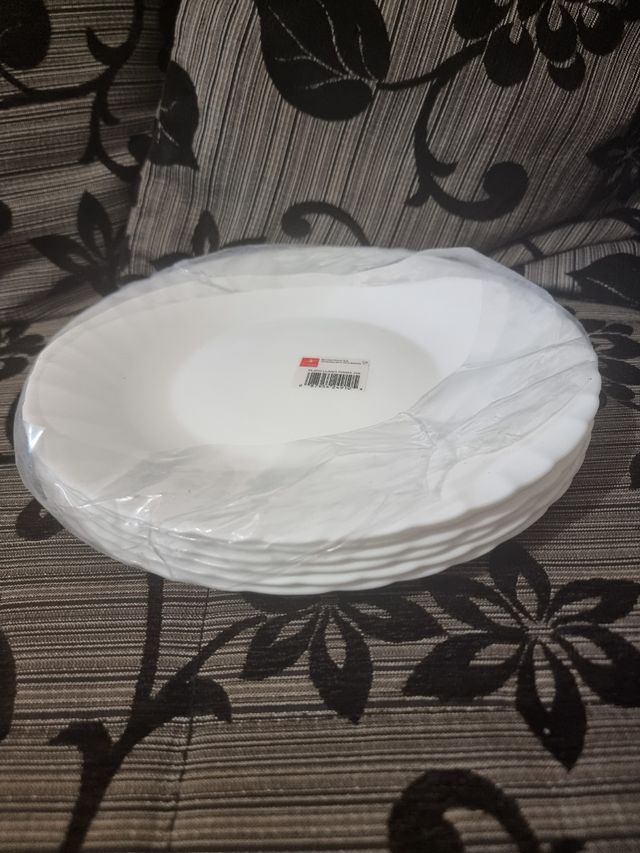 Vendesi, causa trasloco, set da 6 piatti piani di porcellana di Rocco Bormioli NUOVO, ancora imballati.