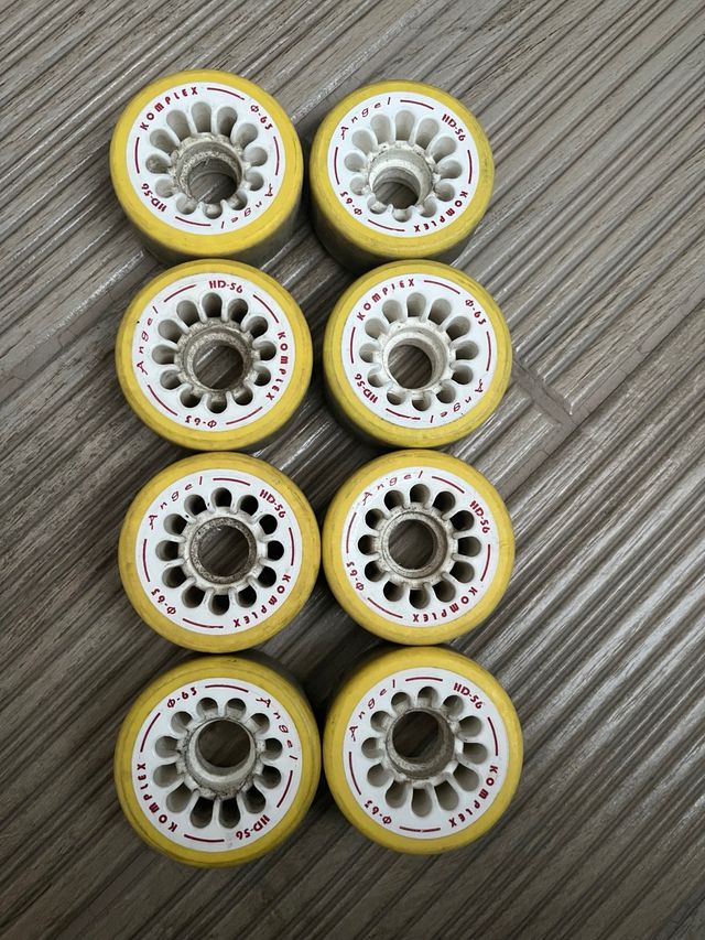 Set di 8 ruote per pattinaggio artistico. - Marca: Komplex - Modello: HD-56 - Diametro: 63 mm - Durezza: 56