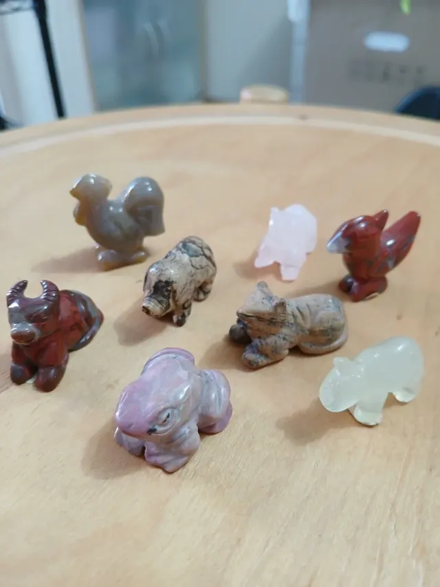 Dettagli del prodottoSet composto da 7 piccoli animali(il rinoceronte ha il corno rotto ,lo regalo)in pietra dura