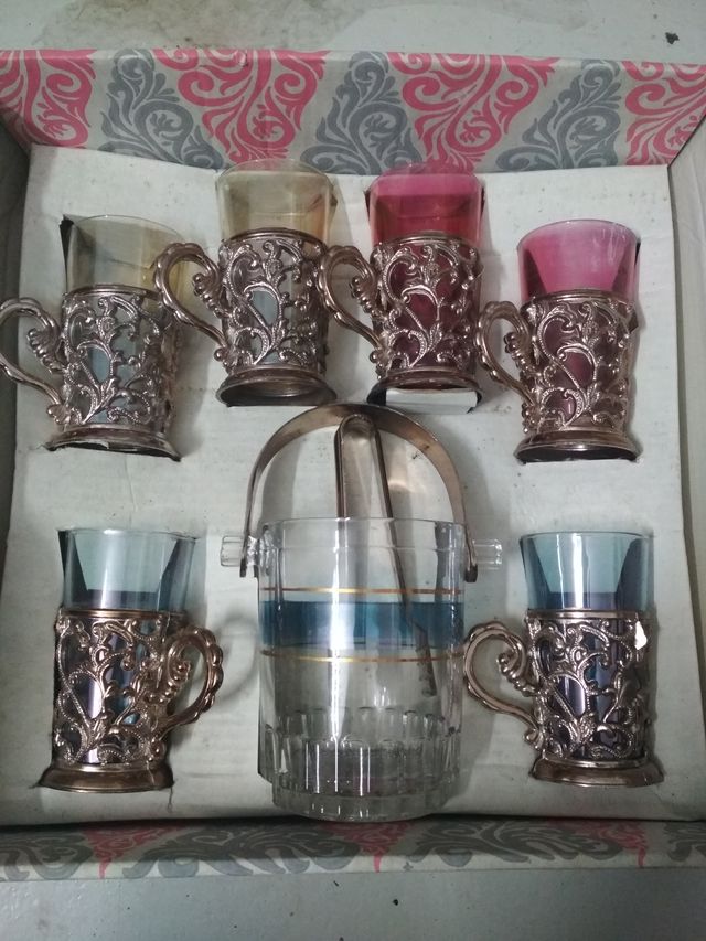 Dettagli del prodottoElegante set di 7 bicchieri con porta ghiaccio, stile medioevale perfetto per ogni occasione.