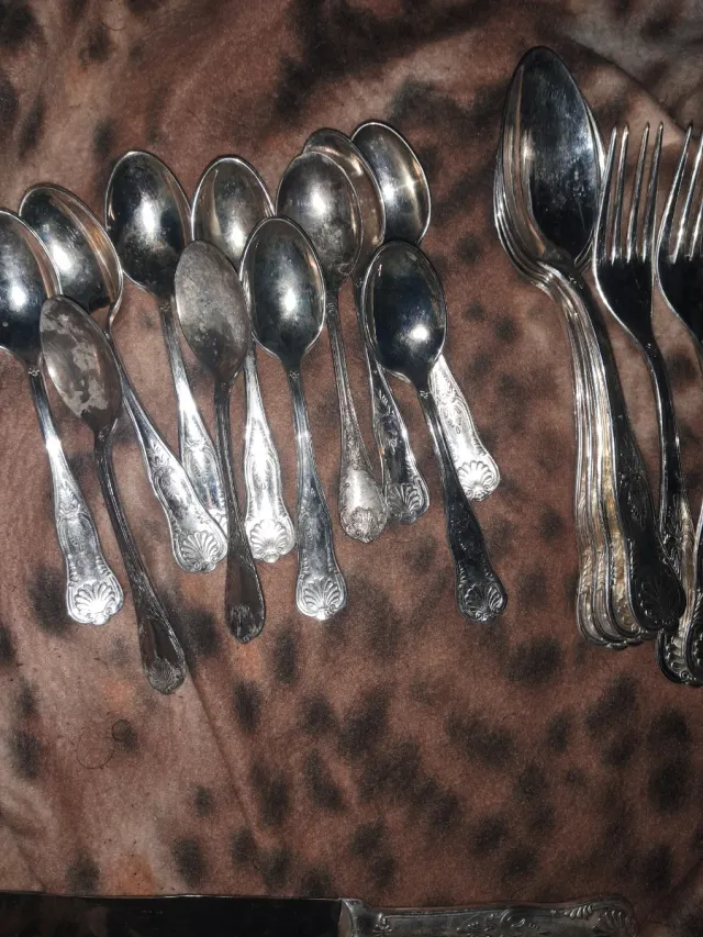 Dettagli del prodottoElegante set di posate in argento, perfetto per occasioni speciali o per arricchire la tua tavola.