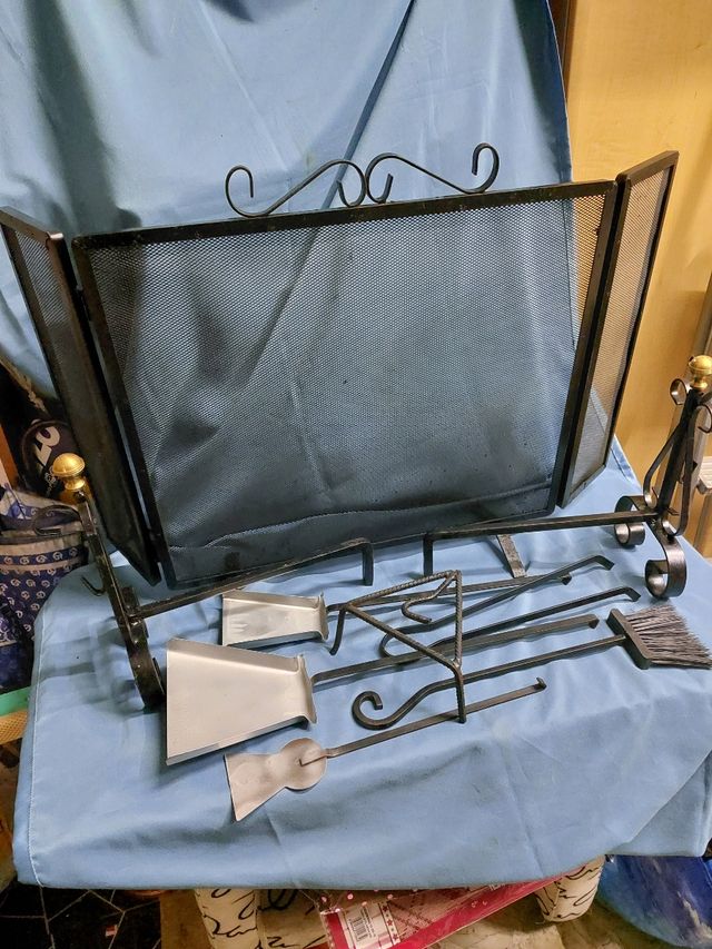 Set 9 pezzi per camino in ferro