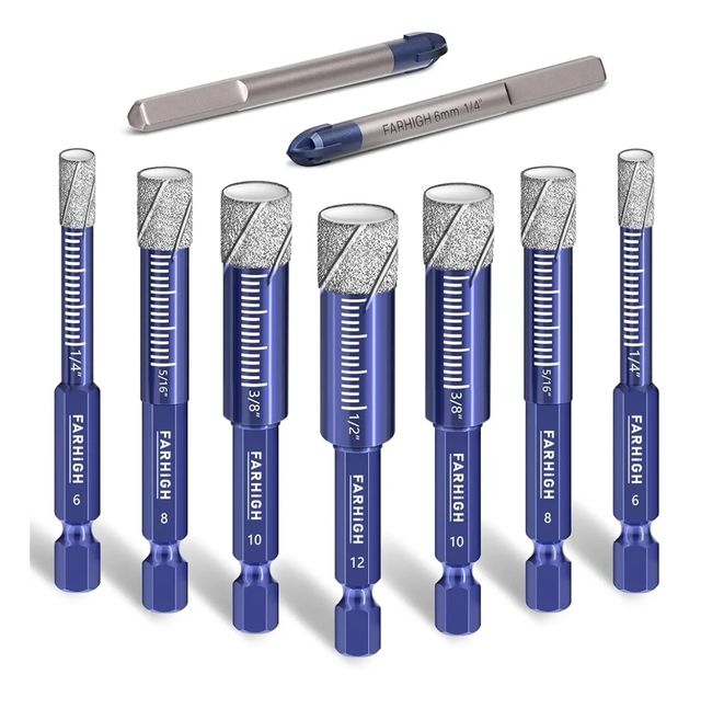 Dettagli del prodottoSet di 9 punte diamantate FARHIGH per forare materiali duri.