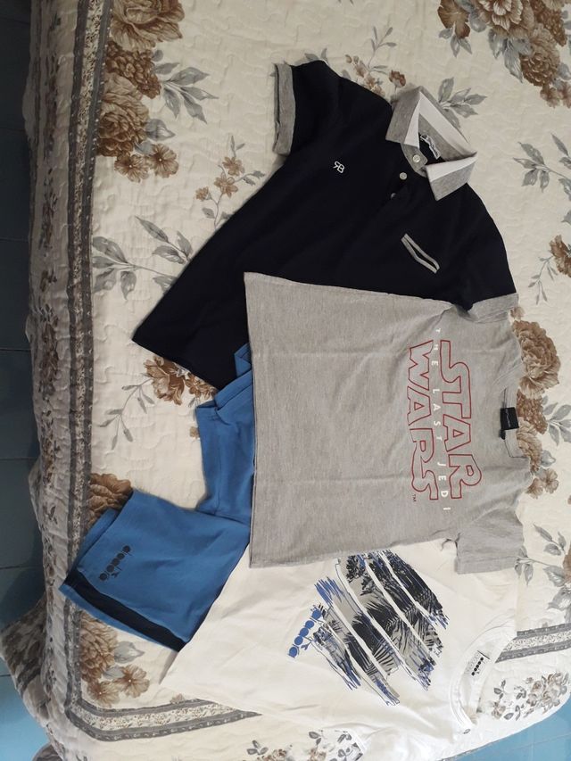4 pezzi abbigliamento bambino: 1) t-shirt Star Wars 2) Polo Renato Balestra 3)t-shirt Diadora 4)pantaloncino Diadora taglia 4-5anni