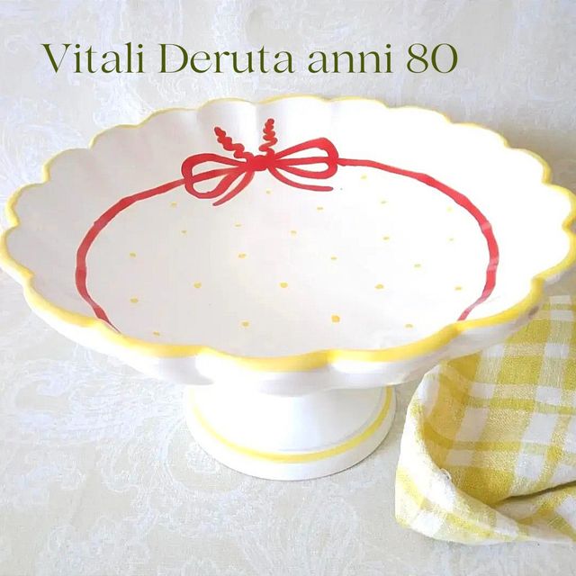 Dettagli del prodottoRealizzato nei primi anni 80 dal laboratorio Vitali Deruta è davvero molto simpatico il set composto alzatina, per la frutta fresca, e grande piatto, per la frutta secca. la ceramica presenta segni del tempo ma gli oggetti sono integri