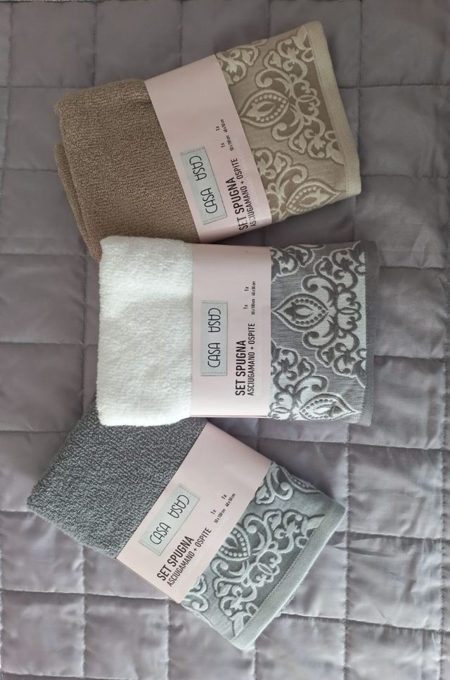 Dettagli del prodottoSet asciugamani viso + ospite,100% cotone.