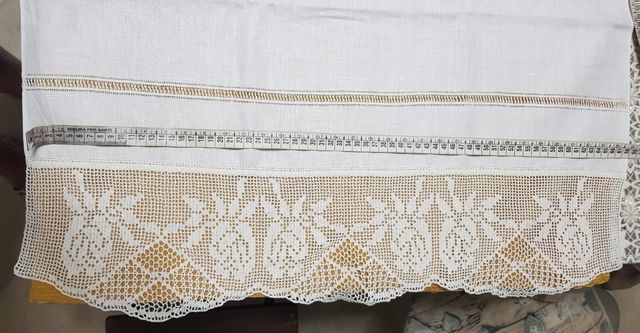 Dettagli del prodottoSet asciugamani con balza realizzata a uncinetto in tessuto 100% lino Giori colore bianco composto da 1 asciugamano viso e 1 bidet. Misure come in foto. Misure del prodotto