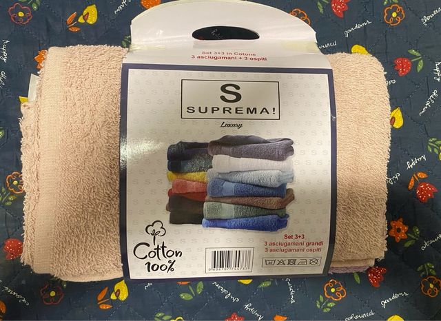 Dettagli del prodottoSet composto da 6 asciugami (3 grandi, 3 ospiti) 100% puro cotone Misure del prodotto