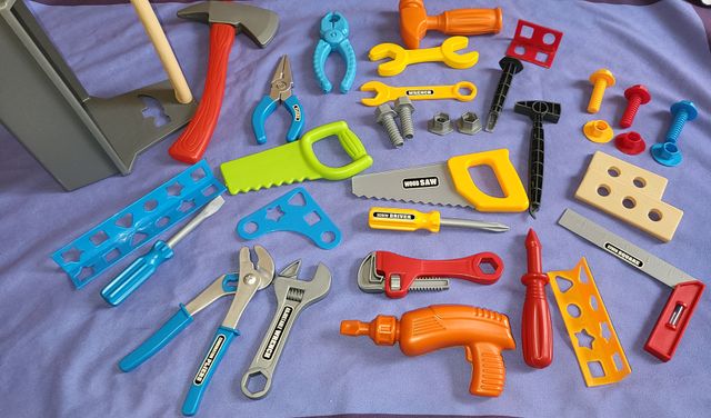 - Include martello, pinze, cacciaviti, seghetto, chiave inglese e altri accessori.