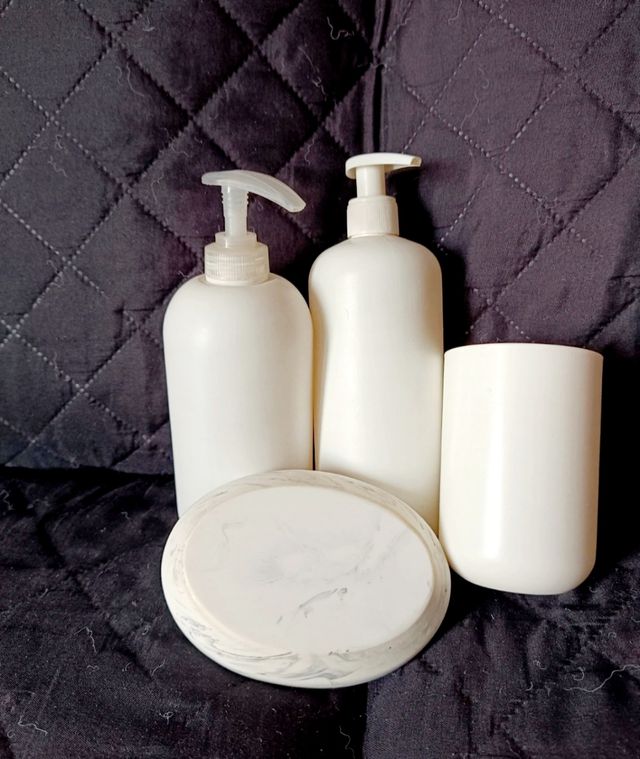 Set bagno formato da due dispenser di detergente un porta spazzolini e un porta sapone ottimo stato prezzo 2,00 euro il set
