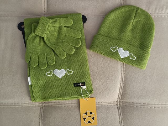 Set nuovo con cartellino, guanti sono ancora attaccati alla sciarpa come si vede nelle foto.