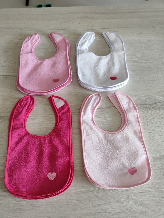 Vendo set di 12 bavaglini come nuovi. Avanti di spugna e dietro plastificati