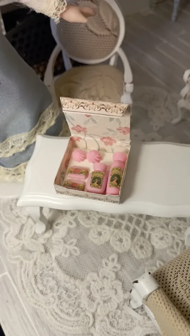 Dettagli del prodottoAggiungi un tocco di eleganza d'altri tempi alla tua casa delle bambole! Questo set "Boudoir Vittoriano" in scala 1:12 è una piccola opera d'arte: boccette rosa, saponi d'epoca e scatolina fiorita per trasformare ogni camera da letto in un rifugio romantico. Dettagli curati e stile Shabby Chic per sognare in miniatura. Un pezzo unico che aspetta solo di essere esposto nella tua collezione più preziosa. Non lasciartelo sfuggire, aggiungilo ai tuoi preferiti! ✨