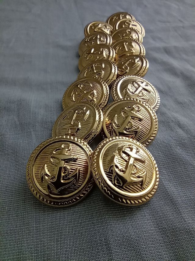 Come nuovoDettagli del prodottoset bottoni num 15 PZ in metallo, vintage,stile regency,incisione ancora,acquistati negli anni 80' e mai utilizzati,in perfette condizioni,ideali per cappotto ∅ diametro 2 cm.