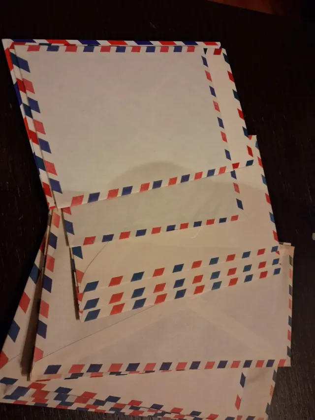 Set di buste per posta aerea con bordi rossi e blu. - Design classico. - Ideali per spedizioni. - Materiale resistente.