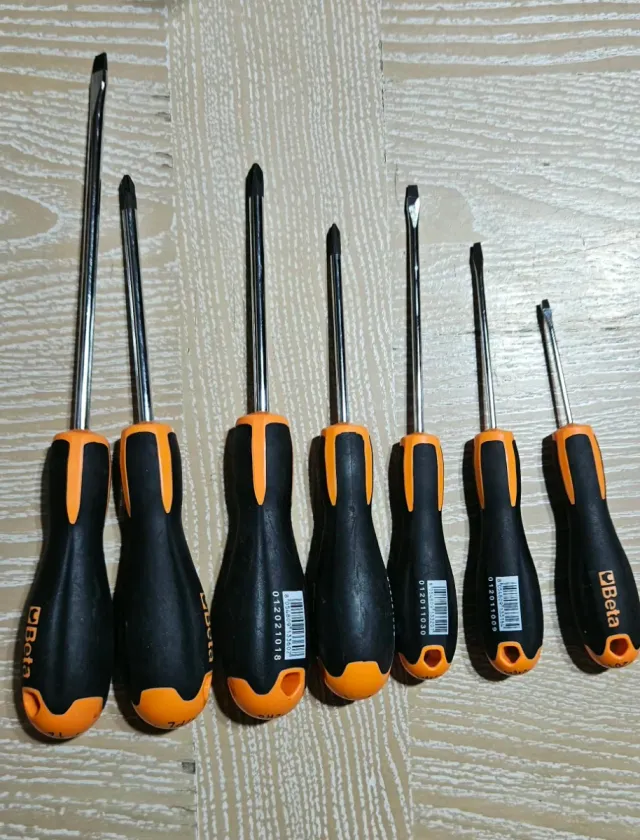 Set di cacciaviti Beta. - Manici ergonomici in gomma e plastica. - Inserti in metallo. - Varie misure e punte.