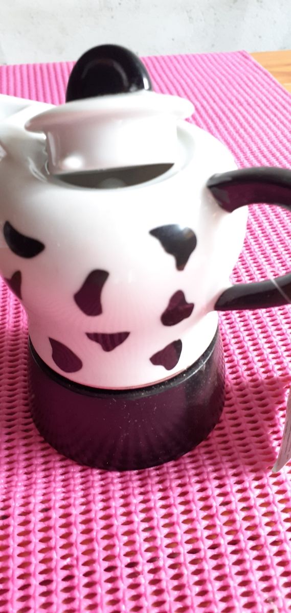 vendo set duo caffè compreso di moka 2 tazze 2 piattini maculato bianco e nero in confezione regalo nuovo