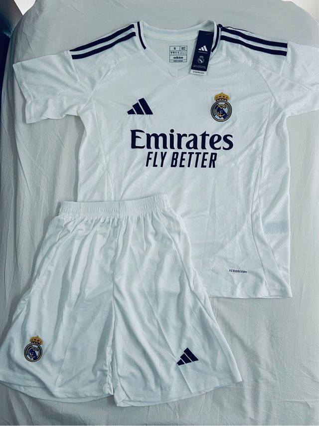 Dettagli del prodottoSet da calcio del Real Madrid, completo di maglia e pantaloncini.