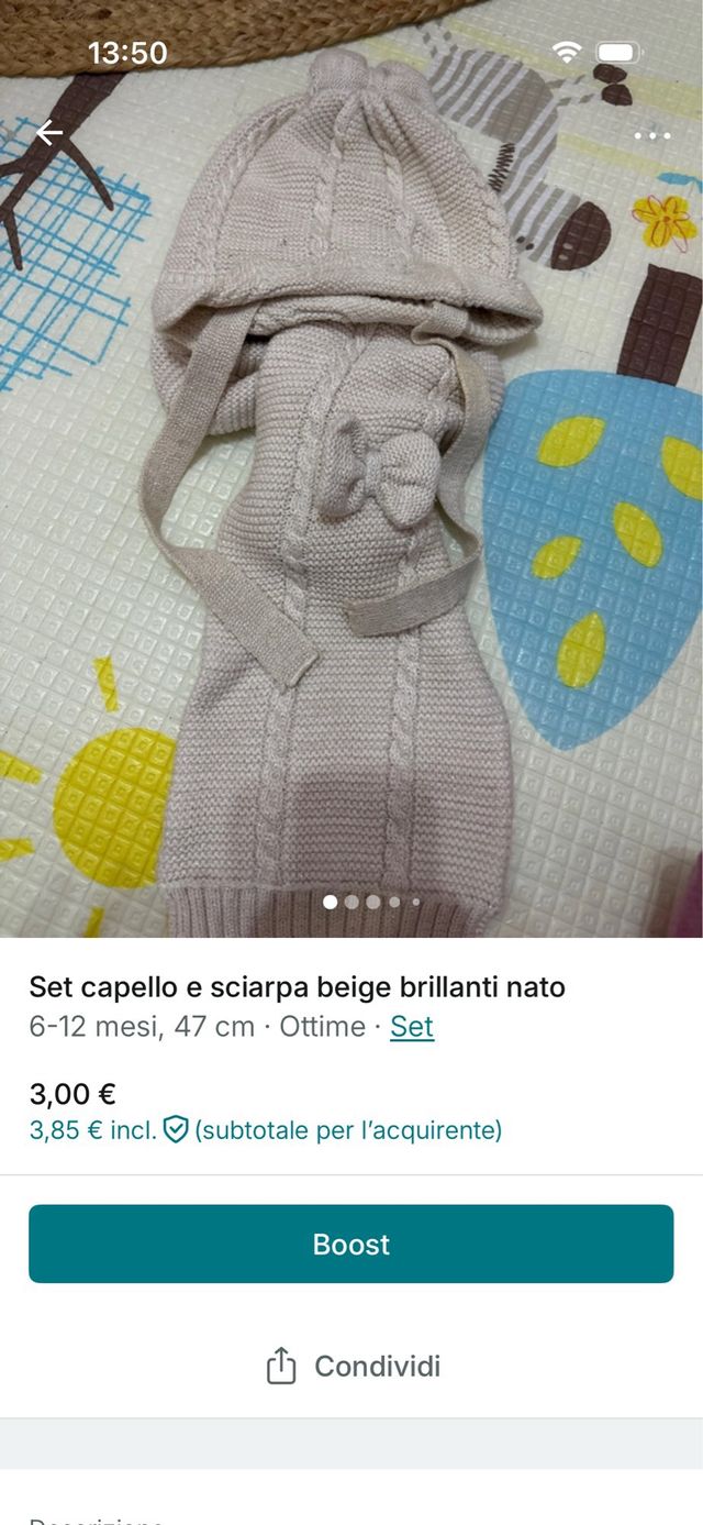 Set coordinato composto da cappello e sciarpa per neonato. - Colore: beige - Taglia: 6-12 mesi - Lunghezza sciarpa: 47 cm