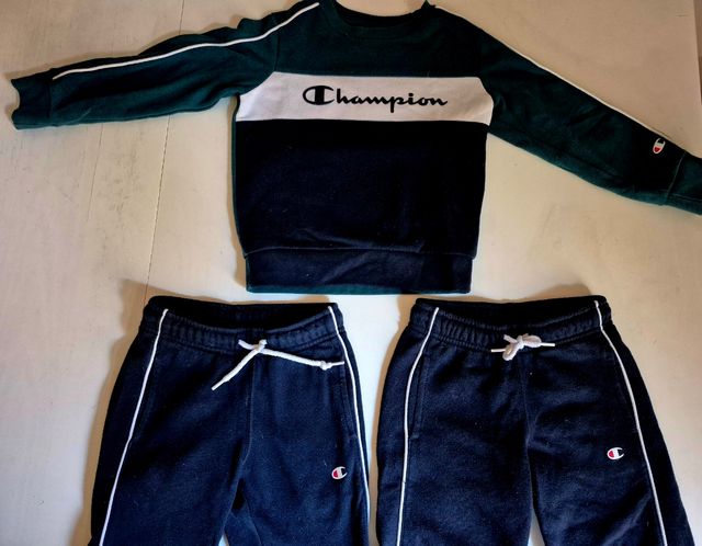Set Champion composto da felpa e 2 pantaloni. - Felpa con banda bianca e logo Champion. - 2 Pantaloni in tinta unita con laccetti in vita e logo Champion. Ottima vestibilità, ben caldo.