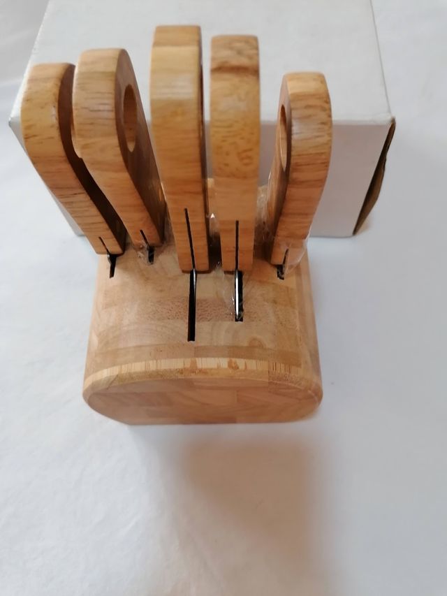 Set coltelli per formaggi con manico e supporto in legno. Misure vedi foto. Mai utilizzati. Spedisco entro 24 - 48 ore esclusi i festivi. Valuto offerte