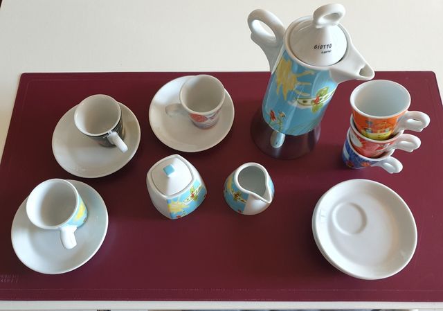 Dettagli del prodottoVendo causa inutilizzo colorato set completo caffè utilizzato giusto qualche volta. Pregiata porcellana Ancap Made in Italy