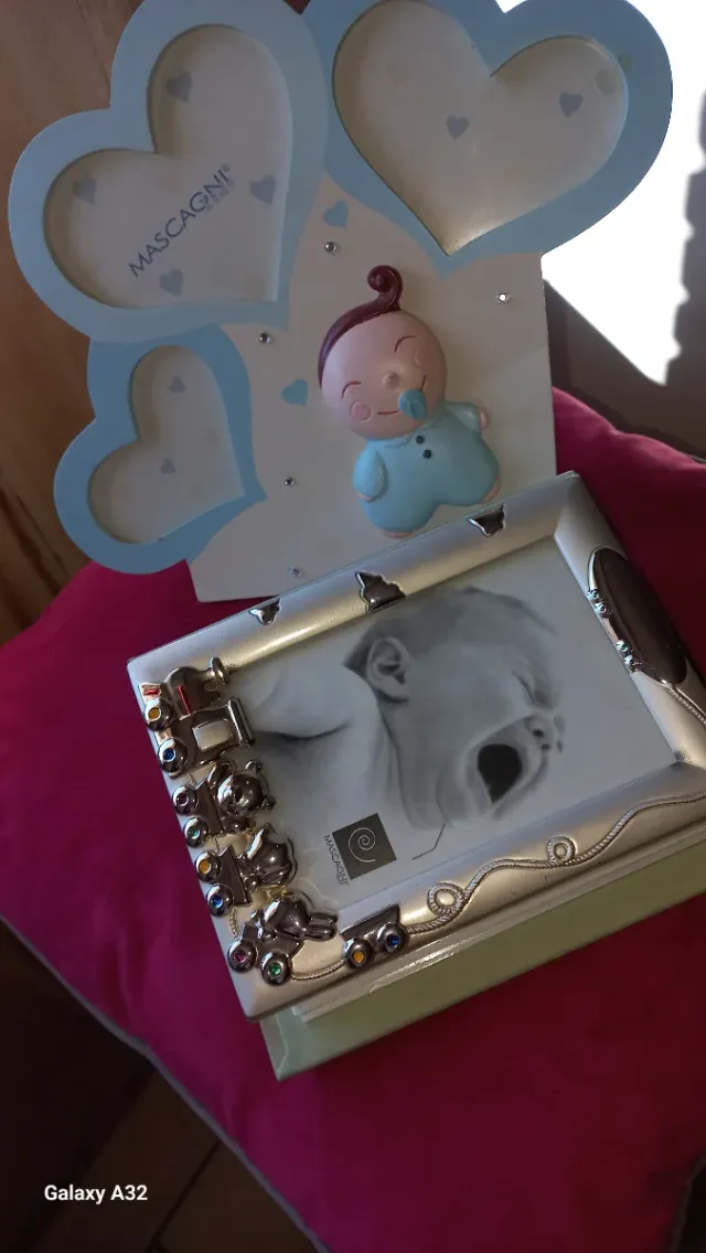 - Cornice a forma di cuore con decorazioni a tema infantile.