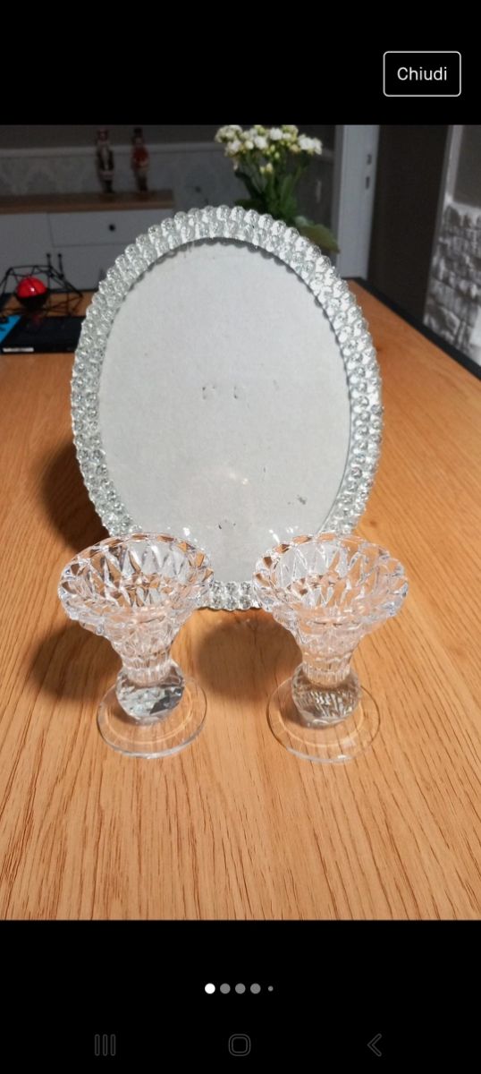 cornice con decorazione in strass ,e dietro di ,mancano solo 2 strass ,mann su nota ,(guarda ultima foto.) velluto e due portacandele ,in vetro