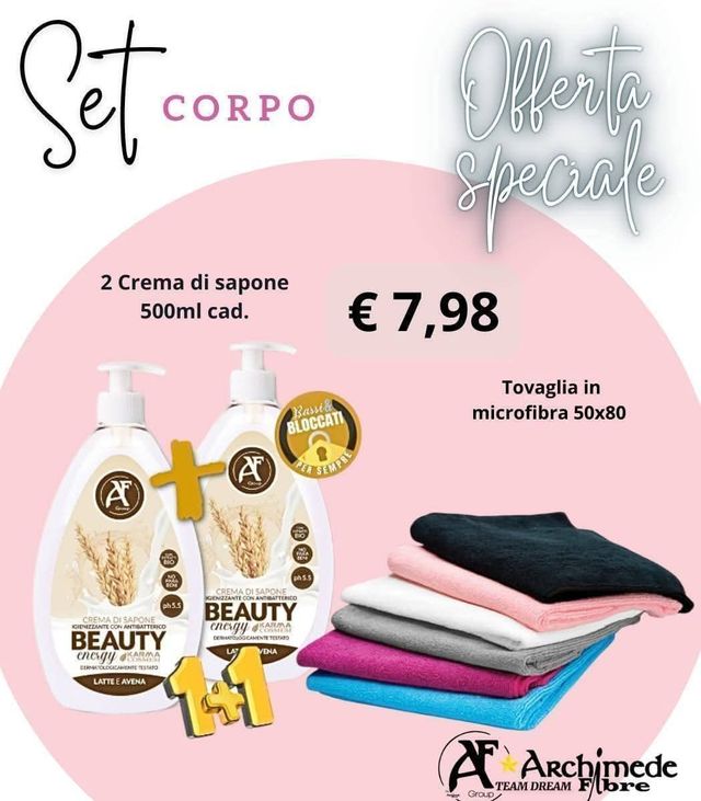 Dettagli del prodottoVendo set corpo Archimede Fibre, perfetto per la tua routine di igiene.