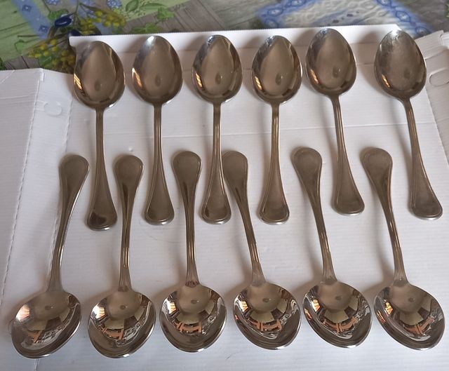 Set da 12 cucchiai della linea Imperial di Abert, dal design classico, nicrosil 18/12, mai usati, solo da lucidare, lunghi circa 21 cm. Made in Italy.