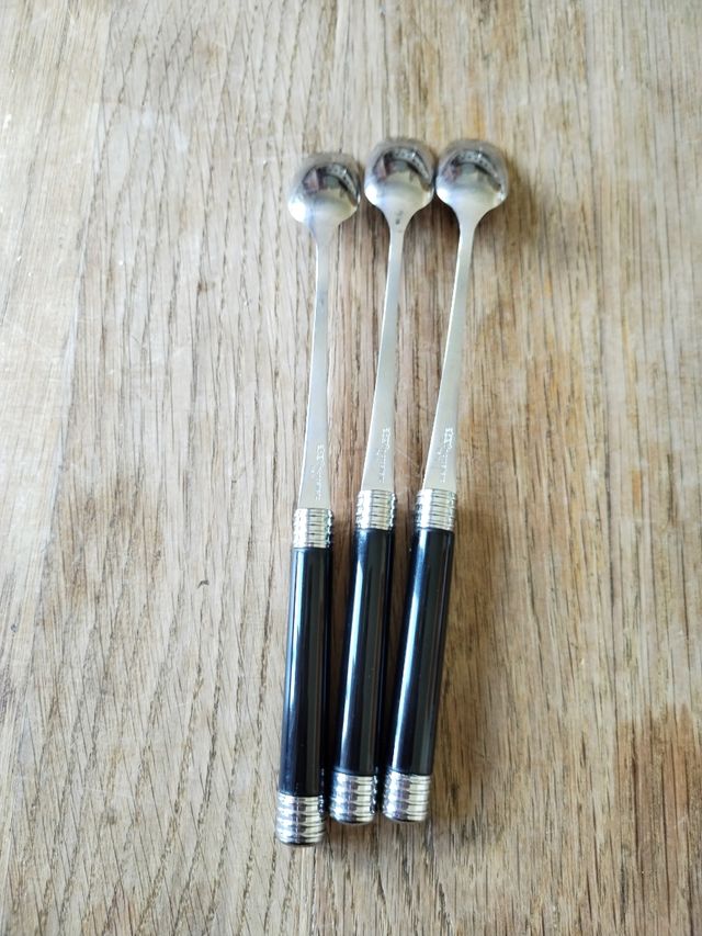 Set di 6 cucchiaini lunghi da cocktail, manico nero in nylon, acciaio 18/12, lunghezza 20cm