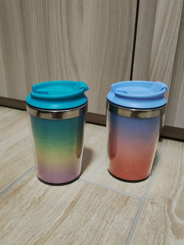 🧋 Set da 2 bicchieri termo 250ml ciascuno Ideali sia per thè e caffè Rivestimento in acciaio Nuovissimi e colorati 🧋